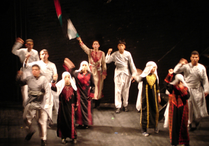 The play itself, "We are the Children of the Camps," is a 75-minute tale of dispossession and resistance. Brought to beautiful and human life by the young actors, the play begins with them as children, playing and living amid the environment of Aida, Palestinian children in forced exile from their home villages. Performed in Arabic, an English translation of the play is projected on a screen near the actors for their U.S. performances. The innocent play of Palestinian children, however, is soon disrupted by a voiceover of the Balfour Declaration and the beginning of the time of exile, as the actors walk in circles through the seasons of exile, old, young and newborn children, until settling in Aida camp. A video montage highlights the story of al-Nakba, as scenes of Palestinians driven from their homes and lands accompany scenes of Palestinians resisting their dispossession. During the video montage, an original song, "1948," plays, illustrating musically the images on screen: "You have seen what happened/The country is swallowed by destruction/The tents filled the country/Time shall take revenge from the occupier/No right shall be lost/As long as there is resistance and there are demanders." One by one, the actors come forward to state their original villages and towns in occupied Palestine, recounting the settlements, invasions and massacres, until all 11 actors stand across the stage, speaking in unison, recounting the stories of village after village and reiterating their commitment to return to their homes before singing their story: "We are the children of the camp /We are the sons of refuge/We are the children of exile /We are the lovers of resistance." We follow the children of Aida through the stories of their lives as children and the story of Palestine; they depict children again at play one moment, while discussing conditions in the camp; in the next moment they become the generation of the Intifada, courageously resisting the occupier, demonstrating and throwing stones until most of them are martyred. Nonetheless, a few survive, and help the others to rise and stand tall once again, speaking of their commitment and ties to the land of Palestine that have not been broken by exile, oppression or death. Another film montage, this one focusing on scenes of the Intifada and resistance, closes with a fluttering Palestinian flag, an image of a key, and, in English and Arabic, the words "We will return." Al-Rowwad's actors then cast a critical and humorous eye on the news, interspersing headlines of alleged breakthroughs in the "peace process" with continuing tales of occupation and promotions of products – even Coca-Cola, and call for news that reflects the truths of their lives. One of those truths is illustrated in the scene that follows, as the actors queue up for a checkpoint manned by sadistic guards who steal a woman's glasses, beat a man trying to cross the checkpoint, and humiliate others, before their practices cause the death of a Palestinian baby, born at the checkpoint after they refused to allow his mother and father to pass. Four women then emerge, speaking as the sisters, wives, daughters and mothers of prisoners, exiles, martyrs and fighters, declaring "La salam" (No peace) until there is justice for the refugees, the prisoners and the martyred as they represent the strength and endurance of Palestinian women. The performance reaches its climax with a powerful debkeh scene, as each actor performs, dancing to a song that celebrates the continuing struggle for return: "The raven flies, the raven flies/they brought destruction to our country/Open a window, remove a door/The state of injustice is a mirage/The partridge fly, the partridge fly/Sing my country's traditional zajal/ Every exiled, every prisoner/Shall return home immediately" The performance closes with a satirical commentary on the so-called "peace process", contrasting the promises of peace with the reality of continued occupation, and the actors of Al-Rowwad again return to their lives as Palestinian children of Aida camp, playing, living, and struggling for return. The show closes with a beautiful debkeh performance as the actors, in traditional Palestinian dress, dance, as the young woman at the center holds aloft a Palestinian flag. The warm reception for Al-Rowwad's performance continued on Monday night, June 20, at the Barrow Street Theater in New York's Greenwich Village, as theater-goers welcomed the performance and again generously supported Al-Rowwad's fundraising efforts. The following night, Tuesday, June 21, saw a sold-out performance at the CUNY Graduate Center's intimate Martin E. Segal Theater, before their final performance, on Wednesday, June 22, sponsored by Al-Awda New York, brought Al-Rowwad to Brooklyn's Al-Noor School. The evening performance was greeted by a large and enthusiastic crowd in the Islamic school's auditorium, who again contributed generously to Al-Rowwad's fundraising to expand their center in Aida camp. Al-Rowwad's time in New York City was arranged by an ad hoc committee of theater activists from Theaters Against War and Nibras, an Arab American theater group, Palestinian and Palestine solidarity activists, from a variety of organizations, who came together to fundraise for Al-Rowwad's visit to the New York/New Jersey area and plan housing, meals and activities for the actors and staff of Al-Rowwad during their visit. Activities Coordinator Ibrahim Abu Srour and Stage Manager Amal Asad, a graduate of the Al-Rowwad program, along with Dr. Abu Srour, accompanied the Al-Rowwad cast, eleven boys and girls of the dozens who work on art, theater and dance at the Al-Rowwad center. Husam Alazza, Ribal Kordi, Hammad Anwar, Rawa Abu-Srour, Salam Alazza, Hamada Alkurdi, Woud Darkhawaja, Ikhlas Abu-Srour, Ahmad Alajarma, Jehad Alajarma, and Hanin Alaarj made up the cast who traveled to the U.S. While in New York and New Jersey, the Al-Rowwad performers went to Coney Island, a Br