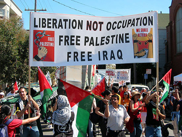 It is imperative that unity in the antiwar movement be a unity that is real and principled – a unity that means including, not excluding, the demands and voices of oppressed communities. Broadening the movement in a real way means welcoming oppressed communities as full partners and full participants in the movement, with the right to define their struggles and their movements within their own parameters, and not the parameters of the Democratic Party or the parameters of Zionism. The occupation of Palestine is integrally linked to the occupation of Iraq; it is not a side issue, rather the occupations are partner colonial occupations of Arab land by U.S. imperialism and by its Zionist proxy, the state of “Israel.” The U.S. war on Iraq is a continuation and expansion of the colonial occupation of Arab land seen in Palestine. The Palestinian cause is indeed a Palestinian struggle – but it is also an Arab struggle, and it is also an international struggle. It is a struggle for the liberation of all Arab peoples, and a struggle for the liberation of all oppressed peoples from imperialism. Working to end the occupation of Iraq is critical and essential, and a responsibility here in the United States. A victory for the people of Iraq is a victory for the people of Palestine. Similarly, working for a free Palestine, and for the anchor of the Palestinian struggle, the right to return, is a responsibility in the United States – the country responsible for the political, economic and military support that has enabled Zionist occupation for over 57 years; and a victory for the people of Palestine is also a victory for the people of Iraq.