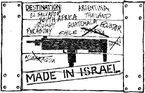 These workshops were incorporated after Israel's creation into the military concerns. The Israeli plants concentrated initially on the production of small arms, mainly Uzi submachine guns and ammunition, and on the upkeep of the weapons that Israel bought from other countries, after the 1967 war. But to some extent before that, Israel decided to channel its resources into the development of original weapons systems or obtaining the necessary data to build weapons systems developed by other countries. The Kfir plane, for example, is a pirated version of the French Mirage 2000 (with a U.S. engine). The Galil gun is an improved copy of the Russian AK47 Kelashnikov. Most of Israel's missiles use pirated U.S. technology, while some of U.S. naval systems are pirated from British designs. Israel now designs and constructs a wide range of weapons. It makes small arms, mortars, air-to-air, sea-to-sea and surface-to-surface missiles which can be altered to accommodate nuclear war heads, armoured personnel carriers, gun and torpedo boats, Kfir combat planes and Merkava tanks. Such a large arms industry cannot survive on local consumption, and since Israel cannot compete with U.S. and European manufacturers in the so-called legitimate arms market, it had to sell its weapons to those states which found it difficult to buy arms from the other manufacturers. These states are mostly headed by the brutal and reactionary regimes in the world. El Salvador: The present regime in El Salvador holds on to power through the organised terror of its army and gangs of murderers who carry out massacres. According to the Stockholm Institute for peace studies, and opposition sources in El Salvador, Israel has been sending military experts and advisors to aid the regime. Guatemala: The Guatemalan regime is infamous for completely destroying demonstrating students as its method of social control. Following reports on atrocities, the Carter regime in the U.S. removed discontinued arms shipments to Guatemala. Following the U.S. move the Guatemalan Chief of Staff, accompanied by an Israeli arms dealer, Marcus Katz, arrived in Israel for a visit. On his return home, he assure his government that its "arsenal will be refilled by Israel" according to foreign sources. International reports reveal that 38 percent of Guatemala's arms imports come from Israel. Nicaragua: Somoza, semi-feudal dictator of Nicaragua whose regime was toppled in July, 1979, after a long and bloody civil war, was one of Israel's best customers. The full extent of the Israeli deals there only came to light after his fall. According to one Israeli source, Israel supplied Somoza with 98 percent of his military imports and continued to send him arms until the last days before his fall. A series of articles in Davar in November 1979 by Nahom Barnia and Jozef Prial exposed Israel's links with Somoza. The two journalists were more concerned with Israel's image abroad and large commission paid to death dealers. On May 8, 1978, they quoted, a letter from Elhanan Har-Lev, representative of the Israeli army in South America to Yaakov Shapira, deputy director of the Israeli Ministry of Defense for Military Exports stating that Galil guns were supplied directly to special terror units under the leadership of Somoza's son and are used to kill worsen and children. Colombia Seeks Arms in Israel The Colombian Defense Minister General Carlos Camacho Leyya was on a visit to Israel on January 16, 1981. He was said to have inspected the production line for manufacture of the Kfir fighter aircraft. Three of Israel's generals were revealed to have some connections with Chile and Argentina. This was in an article in Ha'aretz (an Israeli newspaper) an August 10, 1978. The first general was ex-Chief of Staff, General Haim Laskov who visited Buenos Aires In May 1978. He met with the Argentinean Chief of Staff and had talks with him and other high ranking officers. The second general was Mordechai Hod, former commander of the Israeli air force, and the third general was Mordechai Gur, former Chief of Staff who went to Argentina directly from Chile where he had met with the dictator, Pinochet. The article states that these visits resulted in Israel winning arms sales contracts. A series of articles published in March 1977 in Ha'aretz dealt with Israel's arcs sales to Ecuador. The usual array of weapons ranging from small arms to Kfir fighters was on offer. A group of Israelis, headed try General Rehava'am Ze'evi, then Prime Minister Rabin's adviser on counter-insurgency warfare, were said to have offered to supply Ecuador with advanced equipment and personnel for counter-insurgency services. Israel Now No. 5 in Arms sales Israel's $1.6 billion arms sale last year (1980) made it the fifth largest military exporter, according to a recent CIA report. Nevertheless Israeli sales are expected to increase in 1981, because of Reagan's relaxation of restrictions on tyre sale of Kfir fighters to Latin America. The Reagan administration argues that permitting the sales of Israeli weapons with US engines or components helps Israel pay for its American urns - and reduce its huge outstanding debts to the U.S. On July 8, 1981 the New York Times reported that an international panel selected by UN Secretary General Kurt Waldheim concluded that Israel can make nuclear weapons "within a very short time". The parcel named in 1979 calculates that Israel may already have obtained weapons-grade material for making several bombs comparable to the bomb dropped on Nagasaki in 1945. The panel estimates that Israel's Dimona reactor, which is not subject to international inspection, could have produced enough weapons-grade platinum for 10 or 15 atomic bombs. This article may be shared, reproduced or distributed under a Creative Commons License.